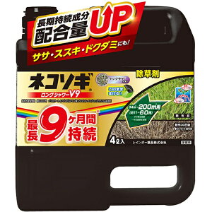 離島は商品の発送を承ることができません。ご注文いただいた場合、キャンセルさせていただきます。】 最長9ヶ月間持続の除草剤。長期持続成分配合量アップ。 商品の名称:ネコソギ ロングシャワーV9 4L(農薬) 農林水産