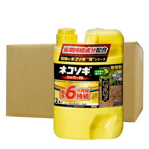 商品名 ネコソギシャワーV6 内容量 2L×8本 成 分 グリホサートイソプロピルアミン塩 0.90%、テブチウロン 0.15%、ヘキサジノン 0.15%、水、界面活性剤等 98.8% 性 状 無色透明水溶性液体 散布面積の目安 17...
