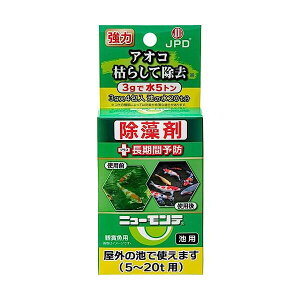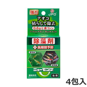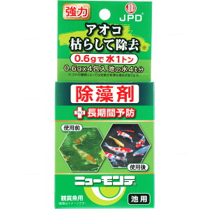 ニューモンテ池用 3g×4包 除藻剤+長期間予防商品特徴本品は低濃度でアオコ類の光合成を阻害させ、除藻します。 長時間効果が持続します。 魚・昆虫・エビ類に対して安全です。 3gで水5トン※コケの種類...