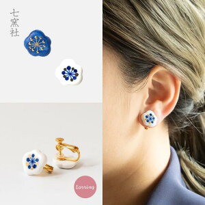 【ぽたり】陶器イヤリング ノンホール 陶器 イヤリング 美濃焼 金彩 耳飾り アクセサリー 日本製 伝統 樹脂イヤリング 直径8mm 陶磁器 個性的 おしゃれ お出かけ 花柄 日本の花 (ラインフラワー...