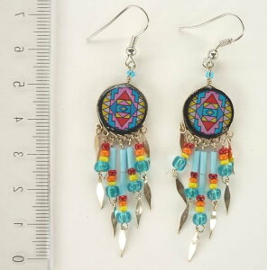 素材は陶器(セラミカ)製です。裏側は黒色1色です。 アンデスのインカ時代の柄を、参考に作られています。 ビーズ付きで、綺麗で可愛いいと思います。 フォルクローレ音楽の、フォルクローレ衣装としてのアクセサリーとしていかがです