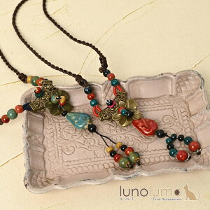 陶器風モチーフとビーズを使用したアンティーク調デザインがおしゃれなロングネックレスです。 【サイズについて】 サイズ:約85cm(調節可) 【素材について】 セラミック他