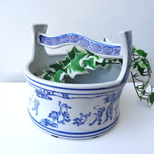 置くだけで和モダンな印象になる 染付けが美しい小さな火鉢は プランターカバーや花器、 小物入れとしてもオススメです 蓮池を思わせる 伸びやかな絵付けが美しいデザイン 涼し気な色遣いが 庭先を爽やかに彩ります...