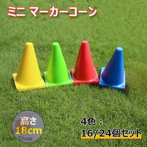 ミニ マーカーコーン カラーコーン 18cm マーカーコーン 16/24個セット 全4色 各4/6個 トレーニングコーン バスケットボール 陸上ドリブル 練習 野球 テニス サッカー 練習コーン 耐摩耗