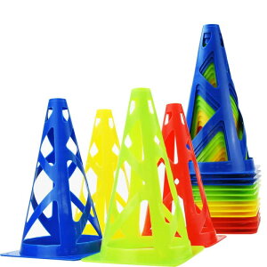 【サッカーやフットサルのトレーニング用マーカーコーン】 サッカーやフットサルのドリブル練習やステップワークのトレーニングにオススメのマーカーコーン。弾力があって割れにくいので、色々なトレーニングが出来るマーカーコーンで
