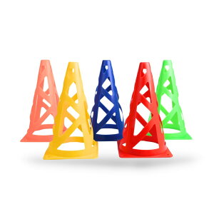 耐久性と柔軟性のあるPE素材で、蹴ったり踏んだりしても割れません。 穴が開いているので風が吹いても倒れにくいデザインになっています。 屋内外での訓練、敏捷性訓練、スピード訓練のための素晴らしいスポーツトレーニングアイテム。