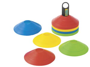 【内容】適度な柔らかさの為、踏んでも割れにくくなっています。収納支柱付。素材:ポリエチレンサイズ:高さ8×直径20cm、先端穴/径6cm重量:約0.5kg/セット特長:セット内容/単色10枚付属品:収納支柱付原産国:台湾競技名:サッカー