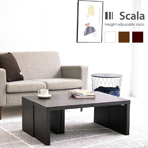■商品説明 高さ調整の継ぎ脚を組み替えることで、ネストテーブルにも広々したリビングテーブルにも階段シェルフにもなる便利な優れもの”Scala”。使い方次第でお部屋