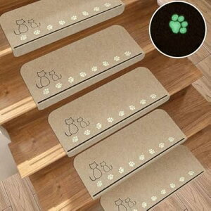 階段マット 階段 滑り止めマット 犬猫階段滑り止めマット 蛍光 15枚 滑り止め 折り曲げ 防音 洗える キズ防止 可愛い猫 約55x22cm 15枚セット 厚さ4mm おしゃれ 吸着 騒音対策 厚さ4mm...