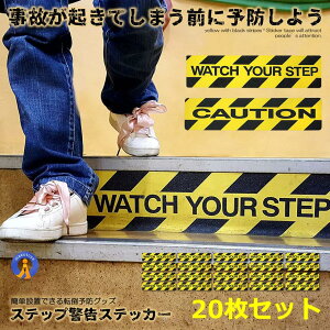 イエローのブラックストライプのステッカーテープは人々の注目を集めます。「足もと注意」の意味の「watch your step」と「注意」の意味の「CAUTION」の文字がプリントされており常に注意深く安全に歩くことを思い出させます。耐...