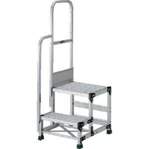 アルミ製作業用踏台 縞板タイプ 2段 高さ0.6m 天板寸法600×400 段高300mm 階段両手すり付き 〔品番:TSFC266TR300〕[ 注番:5517232]特長●作業用踏台と階段両手すりのセットになります...