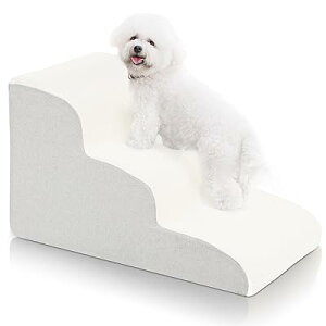 犬用階段小型犬用 高さ40 -犬用ステップ階段スロープベッドカウチ用、犬がベッドに乗るための高密度フォームペットステップ階段、3段猫用ドギーステップスロープ関節痛犬用(ベージュ)ブランド色ベージュ-3...