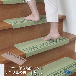 コーナー付階段マット すべり止め付 消臭緑茶カテキン入 サイズ 約55×奥行21cm(コーナー部 554cm) カラー グリーン、ベージュ 材質 表面:ポリエステル100% 裏面:アクリル樹脂 入り数...