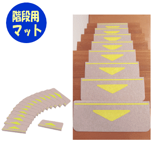 商品名:折り曲げ付階段マット 三角マーク付き ・三角マークが目印で階段の昇り降りが安心 ・階段のサイズに合わせてハサミで自由にカットができます。 ・サイズ:幅55×奥行21cm ・折り曲げ部分:幅55×4cm...
