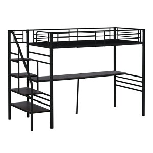 【組立設置サービス付】 ロフトベッド 階段 階段付き ハイタイプ ロフト ベッド システムベッド パイプ パイプベッド 収納 宮付き コンセント付 3段可動デスク&コンセント宮棚付きロフトベッド シングル ベッドフレームのみ(マットレス無