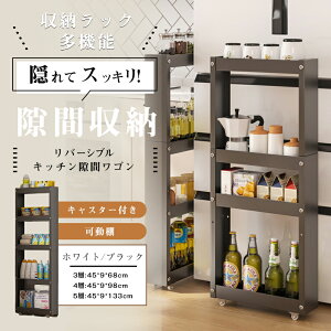 冷蔵庫横などすき間にぴったり収まるスリムなハイ4/5/6段キッチンストッカー。ちょっとしたすき間の奥まで使える引出し式キッチンラック、保存容器やレトルト食品・缶詰や紅茶などのストック、キッチン小物の収納に最適です...