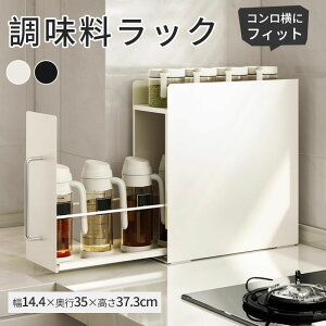 ゴチャついた調味料をまとめて整頓 コンロ横に設置できる調味料ラックです。スパイスの小瓶からお醤油や油類も収納可能。油ハネで汚れる心配もありません。コンロ横の空いたスペースに有効活用し、調味料などを隠しつつ収納できるのも嬉しいポイントの...