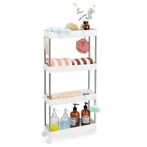 4段あるのでかさばる調味料や詰め替えストックなど様々なものをたっぷり収納できます。 【移動らくらくキャスター付き】 4輪キャスターがついているので、隙間からの引き出しや移動もらくらく手軽にできます。<...