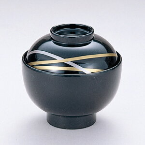 光輪松 ふた付き 高台 雑煮椀 13.5cm (黒内朱 ブラック) 黒地に金で表現された、松と輪を組み合わせたデザインが上品で美しい漆の器です。 お雑煮をいただくのに最適...