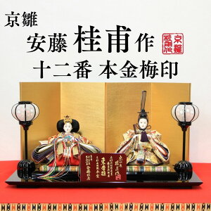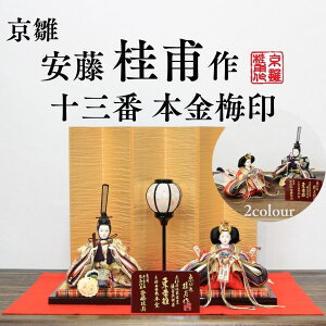 ひな人形 親王飾り 京雛 安藤桂甫作 人形師:安藤桂甫 黄綬褒章受章 京都府伝統産業優秀技術者 京雛 十三番 本金梅印 洋金箔絹シケ六曲屏風 毛氈飾りセ...