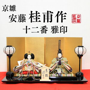 ひな人形 親王飾り 京雛 安藤桂甫作 人形師:安藤桂甫 黄綬褒章受章 京都府伝統産業優秀技術者 雅印十三番 No.6 金箔押し屏風 黒塗り平台セット<br...