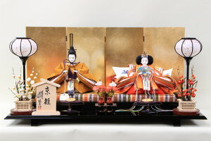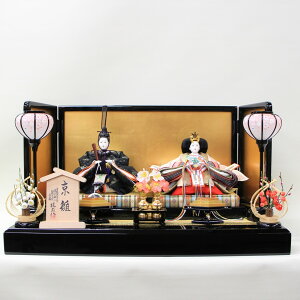 ひな人形 親王飾り 京雛 安藤桂甫作 人形師:安藤桂甫 黄綬褒章受章 京都府伝統産業優秀技術者 十二番 本金梅印 No.1 金箔押し屏風 黒塗り平台セット サイズ: 幅55×奥行き33×高さ29.8(約cm)...