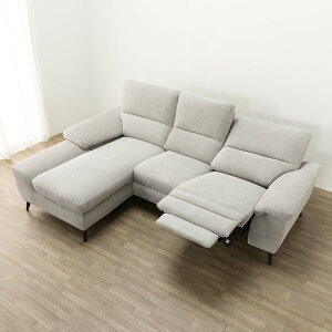 ファブリック素材は温かみがあり、お部屋にナチュラルで落ち着いた雰囲気を演出する電動カウチソファです。電動ソファはボタンひとつでリクライニングの角度を細かく調整できるため、体勢に合わせて最もリラックスできるポジションに