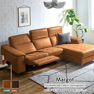 3人掛け レーザーファブリックのカウチ型電動リクライニングソファ! レザーファブリックとは見た目は高級感のあるレザーでありながら、肌触りは触り心地の良いファブリックという2つをあわせもつ素材です。 リ...