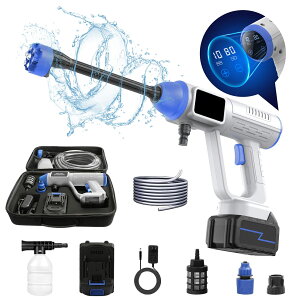 [ポータブル高圧洗浄機]:このコードレス高圧洗浄機は自吸機能があり、多用途で小型で持ち運びが簡単で、ノズルを切り替えて効率的に洗浄できる6-in-1ノズルを備えています。 操作も簡単で、収納時も省スペースです。 【持ち運びが簡単】この...