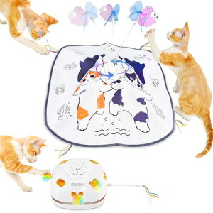 充電式猫用おもちゃ、かくれんぼ、魔法の杖、モグラ叩き、羽根追いかけ、回転トビウオ、室内インタラクティブ猫のおもちゃ、セルフプレイ電動自動猫のおもちゃ【5-in-1 インタラクティブ猫用おもちゃ】OR