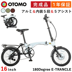 組み立て済みの完成品自転車で安心! シマノ製のコンポーネントを採用した内装5段変速ギアに、独自の折りたたみ構造を持つ折りたたみ式電動アシスト自転車が、180Degreeブランド復活第二弾として登場! 折り畳み時キャスター装備なので...