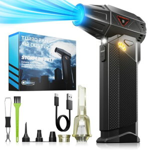 【超高速52m/s】高速ベアリングと13枚合金ファンを搭載した電動エアダスターは、最大風速52m/sを超える驚異的な性能を誇り、強力で効率的なエアフローを実現します、作業台面、車内室、キーボードと狭い空間内のほこり...