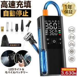 充電式の電動空気入れ(エアーポンプ)、急速充填、自動停止。自動車、バイク、自転車、ボール、浮き輪等に対応しています。便利なLEDライト付き(SOSモード搭載)。 ■製品仕様 ?商品...