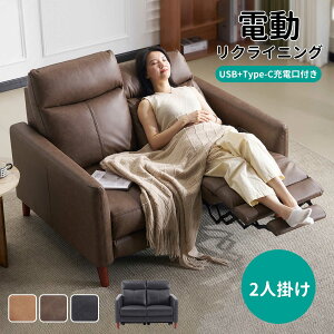 C充電対応】ソファ 電動リクライニング 2人掛け USBポート付き スマホ充電可 リクライニングチェア 電動ソファ