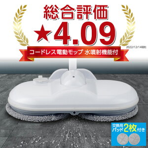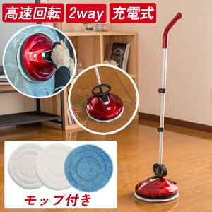 電動モップ コードレス 専用パット2枚付き 充電式 超軽量設計 回転モップ モップクリーナー クリーナー 水拭き フローリング 床掃除 掃除グッズ