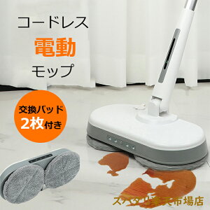 電動モップ コードレス 専用パット2枚付き 充電式 超軽量設計 回転モップ モップクリーナー クリーナー 水拭き フローリング 床掃除 掃除グッズ