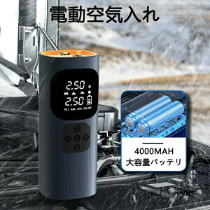 自動車 タイヤ 空気入れ バイク用 電動空気入れ ホースコネクター 自動停止 エアーポンプ 2000mAh 充電式 小型 軽量 携帯便利 電動ポンプ プレゼント