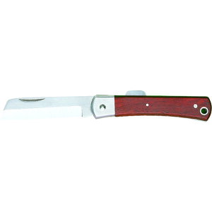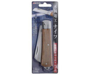 ●電線ケーブルの被覆むきやアウトドア・工作などに●携帯に便利な折り込み式●セーフティコード取付穴付●材質:刃/炭素工具鋼SK4、ハンドル/カリン