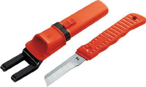 [仕様]:■使いやすく、携帯に優れるコンパクトサイズ■収納時に刃が出ない安全ロック機構、使用中にも刃が閉じない。■手袋着用でも滑りにくいエラストマーグリップ■縦割きでも切り渋らないホロー刃形状■リングスリーブ(小)保持用穴