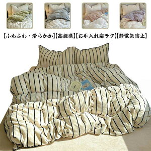 おしゃれな北欧風秋冬用暖かい布団カバーセット/4点セット。【高級感】掛布団カバー(ファスナー開閉式、4ヶ所ヒモ付き)掛け布団がズレないように固定する為のひもが、4か所ついております。スッキリしたおしゃれなストライプ柄、洗練