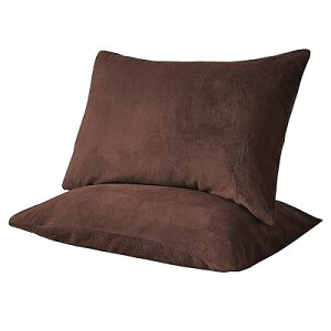 枕カバー 秋冬用 二枚セット マイクロファイバー まくらカバー フランネル パイル地 ピローケース ふわふわ 柔らかく肌触り 暖かい あったか 洗える 静電気防止加工 封筒式 (ブラウン, 43×63...