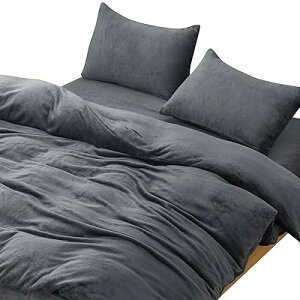 3点セット 吸湿発熱 ふわふわ暖かい 極細マイクロファイバー 静電気防止加工付き 寝具カバーセット 全周ゴム付き 洗える 掛け布団カバー ボックスシーツ 枕カバー ダックグレーブランド色ダークグレーモデルL