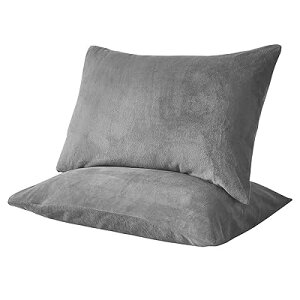 枕カバー 秋冬用 二枚セット あったか マイクロファイバー まくらカバー フランネル パイル地 ピローケース ふわふわ 柔らかく肌触り 暖かい 洗える 静電気防止加工 封筒式 グレー 43×63cmブ...