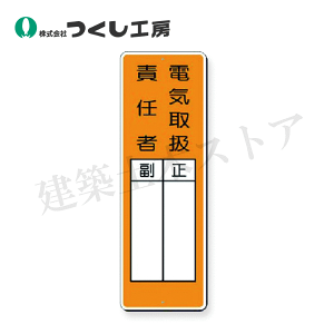 空欄に責任者をいれられるタイプ。 ■摘要:2.5mmФ穴上1・下1 ■寸法(mm):360×120×1.2厚 ■内容:電気取扱責任者 ■エコユニボード