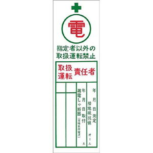 短冊形ステッカー標識 シール標識 「電気取扱責任者 正副」 ○サイズ タテ360mm×ヨコ120mm ○ステッカータイプ(裏面粘着) つくし工房 短冊標識 安全標識 プレート標識