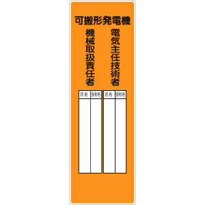 商品の特徴 機能別特殊標識 短冊型標識 電気関係 責任者 製品仕様 ●材質:SCボード ●サイズ(mm):360×120 ●表示内容:可搬形発電機/電気主任技術者・機械取扱責任者