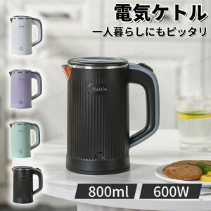 約800ml 一人暮らし ケトル 電気ケトル ケトル おしゃれ 電気ケトル おしゃれ 電気ポット ステンレス 空焚き防止 大口径 蓋を開ける 着脱式電源コード 静音設計 火傷防止 持ち運びやすい