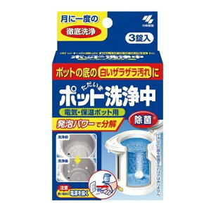 ポット洗浄中 電気・保温ポット用洗浄剤 ポットの底のザラザラ汚れに 3錠 小林製薬 [洗浄剤 ポット用] ●「ポット洗浄中 25g×3錠」は、水洗いや洗剤では落ちないポット特有の汚れを、強力なイオンの力でぐんぐん落とすポット用洗浄剤...