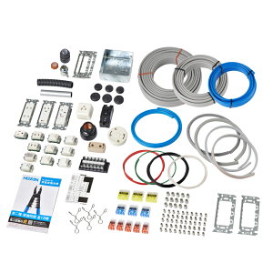 【電線】VVF2.0mm電線には青色外装を採用し、視認性を向上。【器具】過去の試験で実際に使われたメーカーを中心に器具を選定。器具の再利用を前提としています。(リングスリーブ除く)重量 6.4kg。