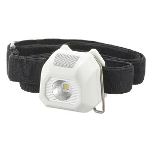 LEDミニヘッドライト(MAX25 lm/連続点灯LOWで6時間/IPX4防飛沫形/調光2モード/ボタン電池 CR2032×2個付属)・型番: LC-HCR1-W・JANコード: 4971275813533・販売元:...